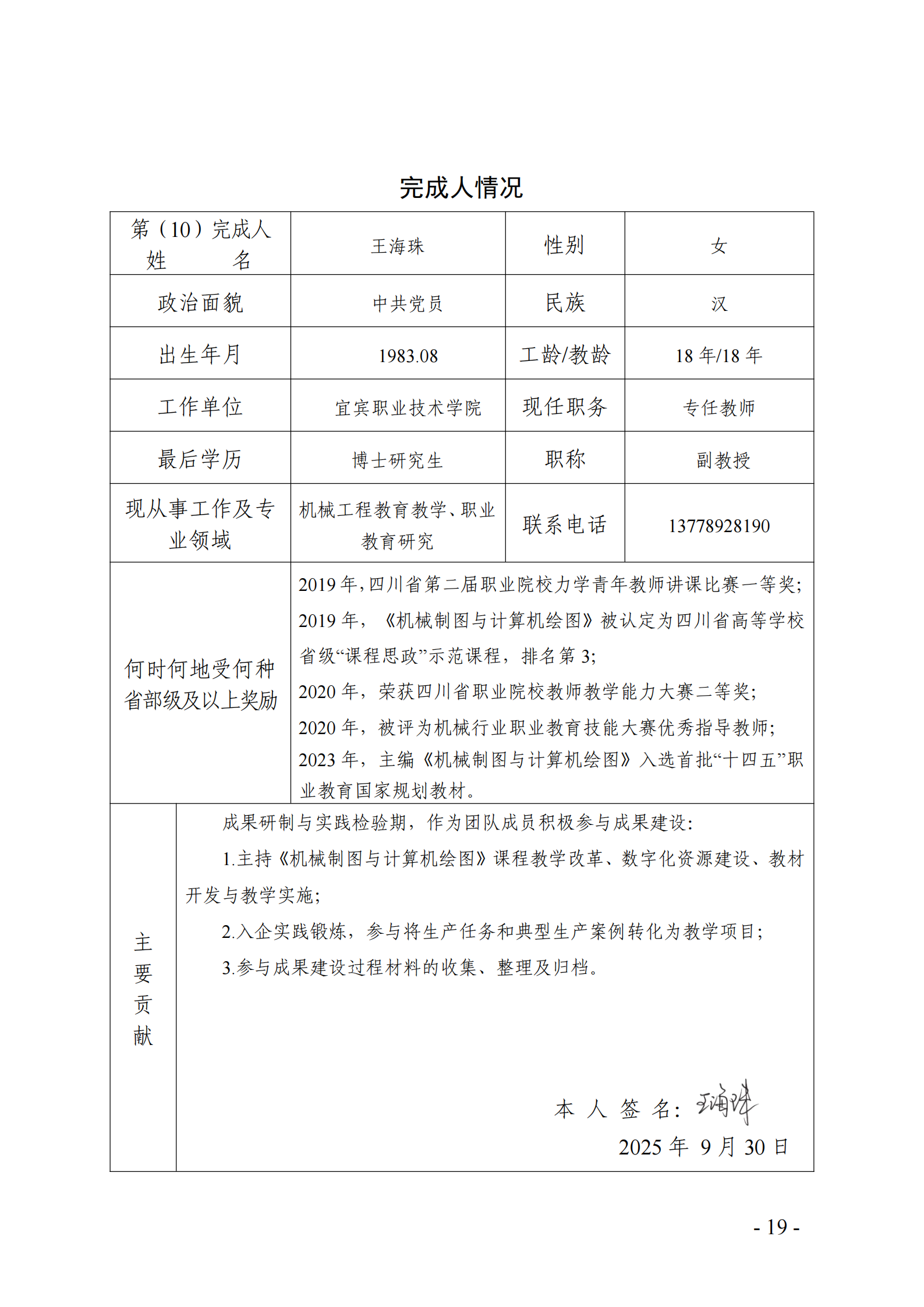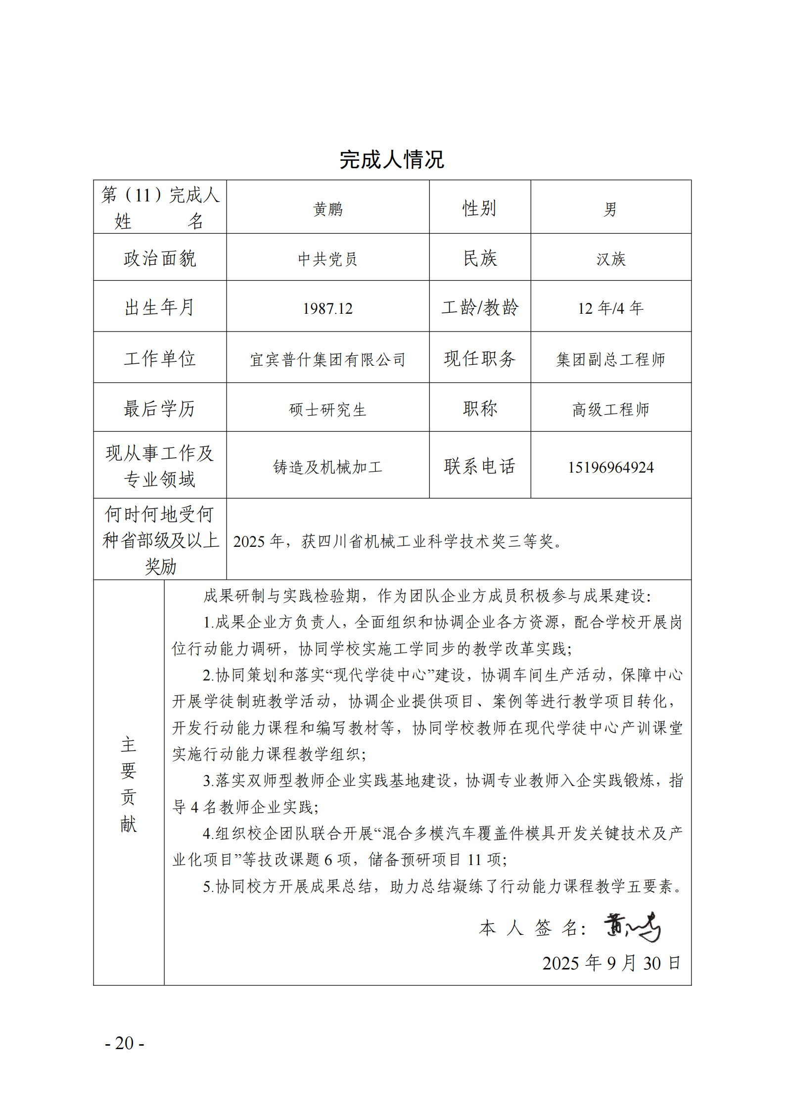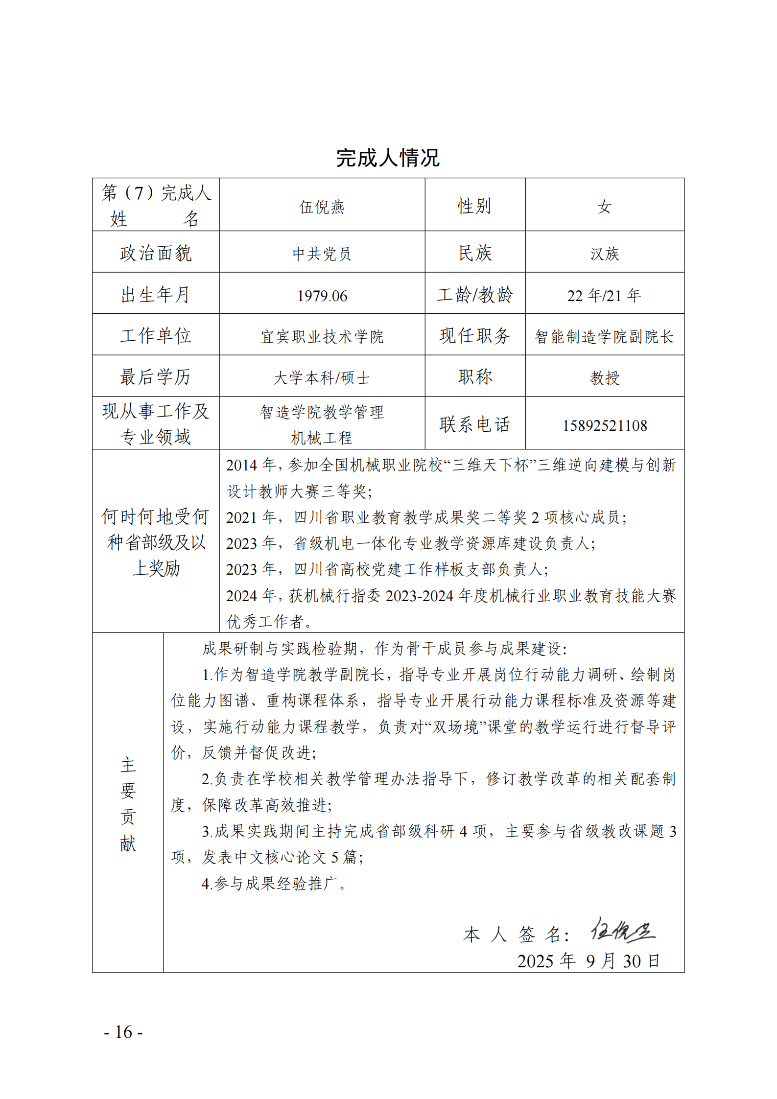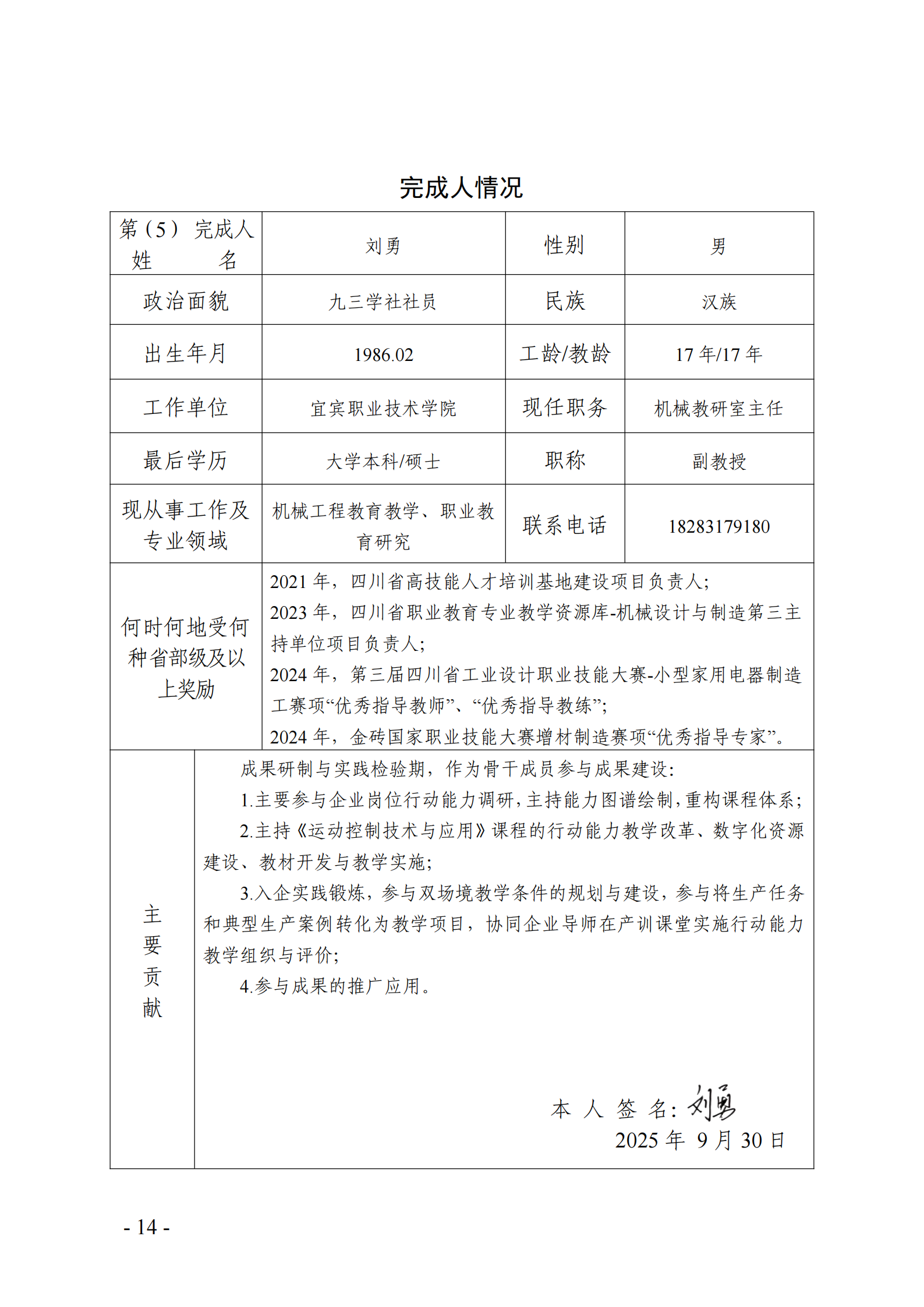 主要完成人情况