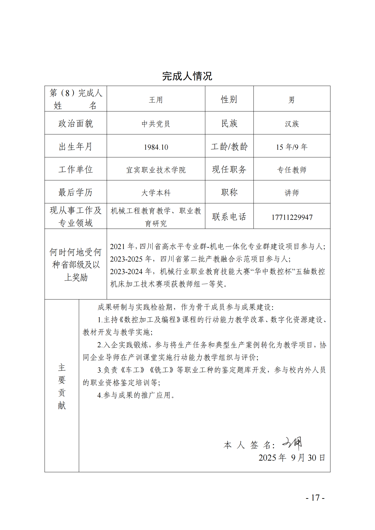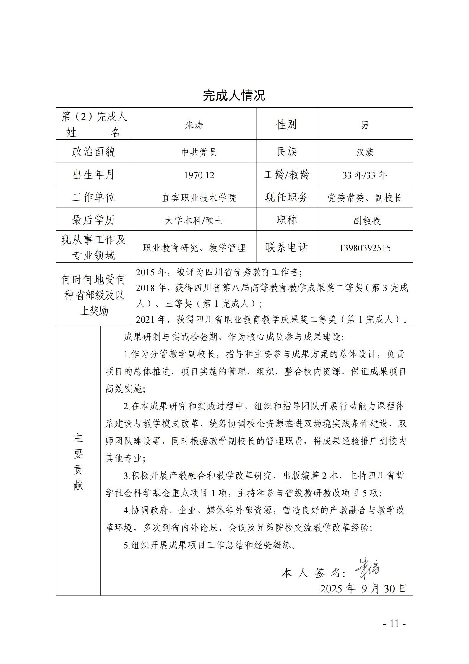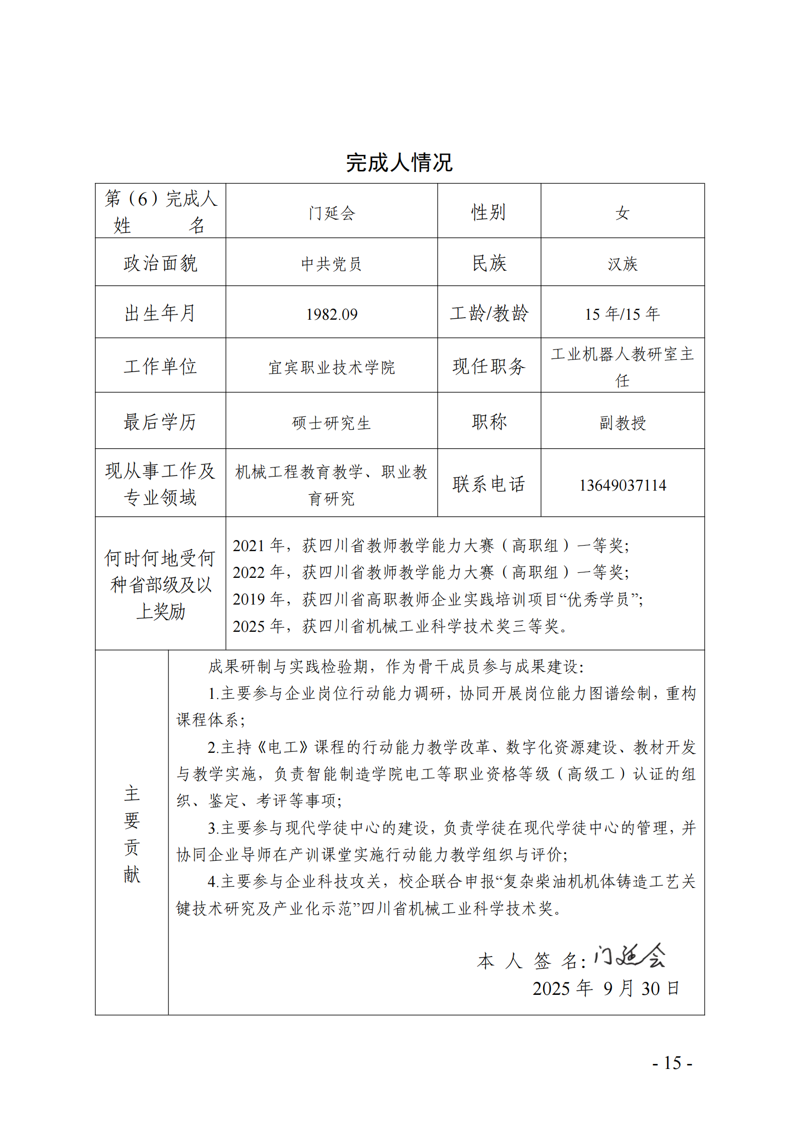 主要完成人情况