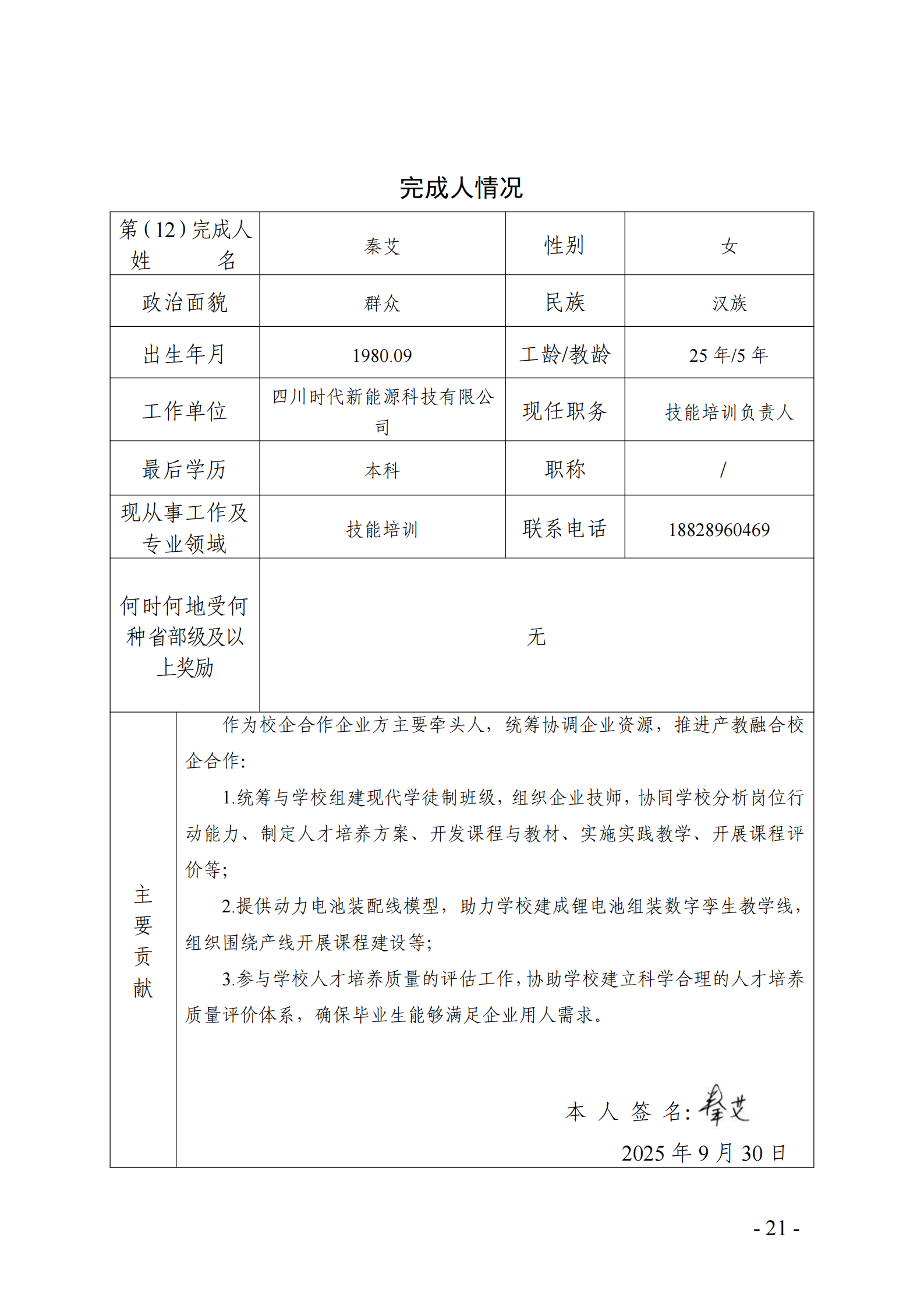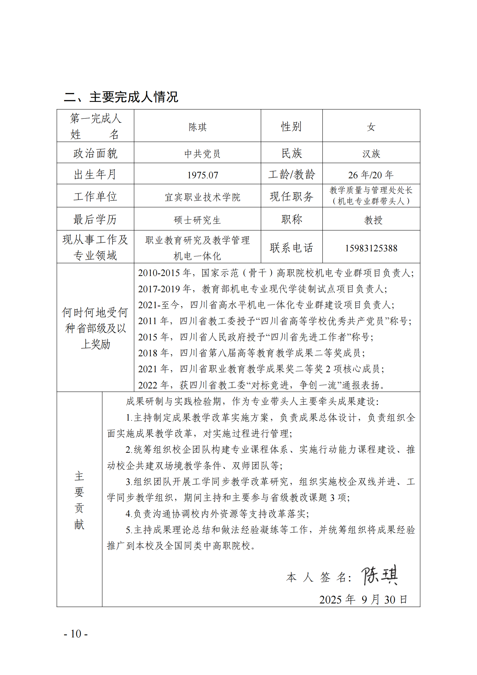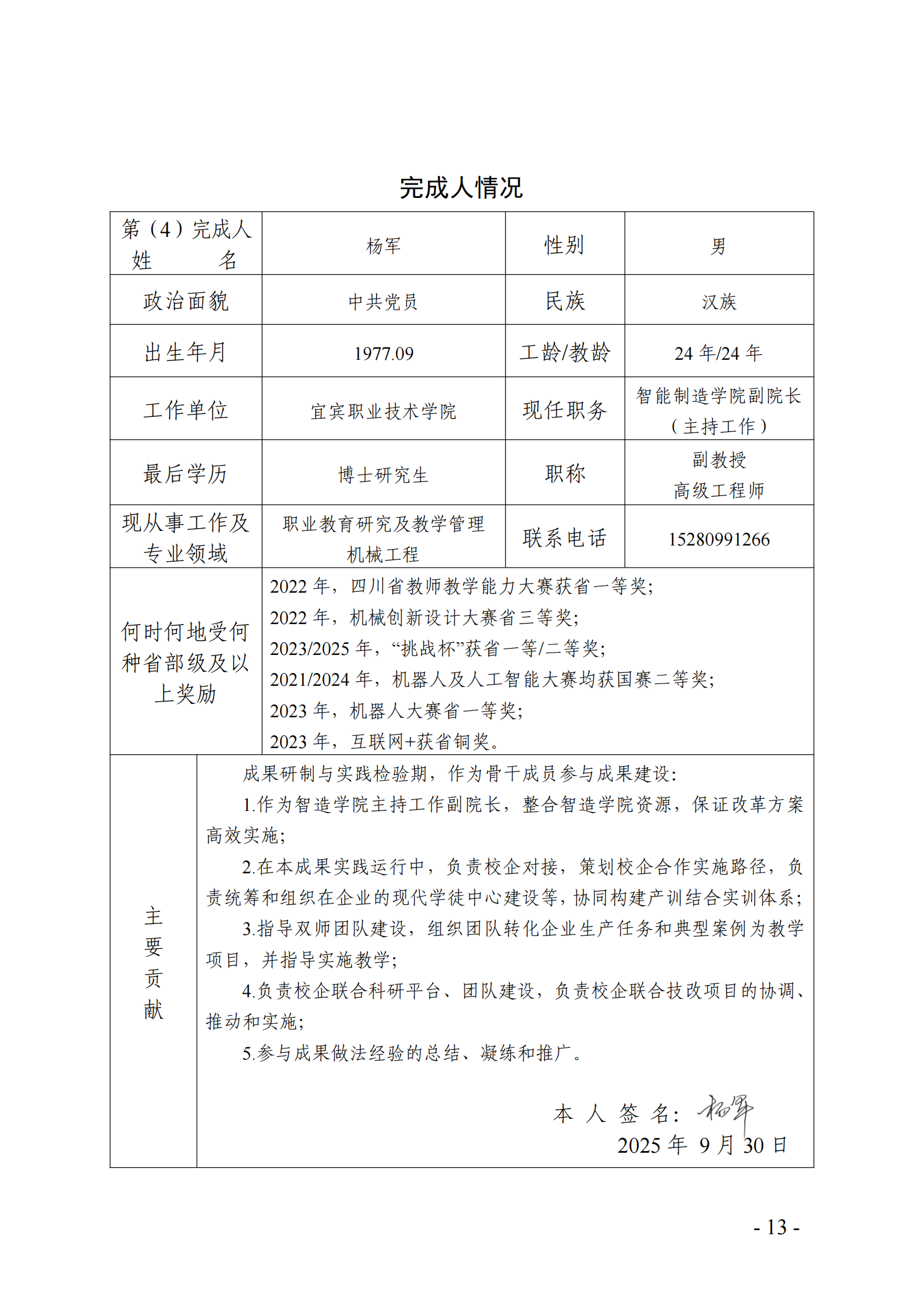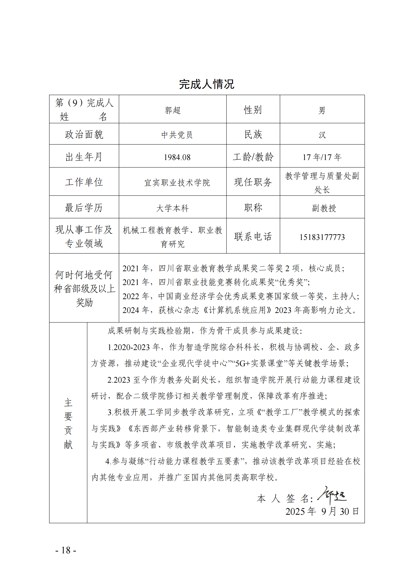 主要完成人情况