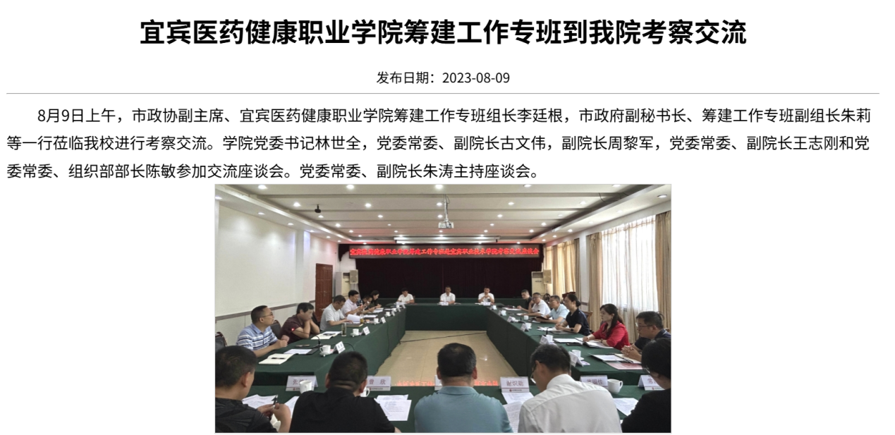 宜宾医药健康职业学院筹建工作专班到我院考察交流