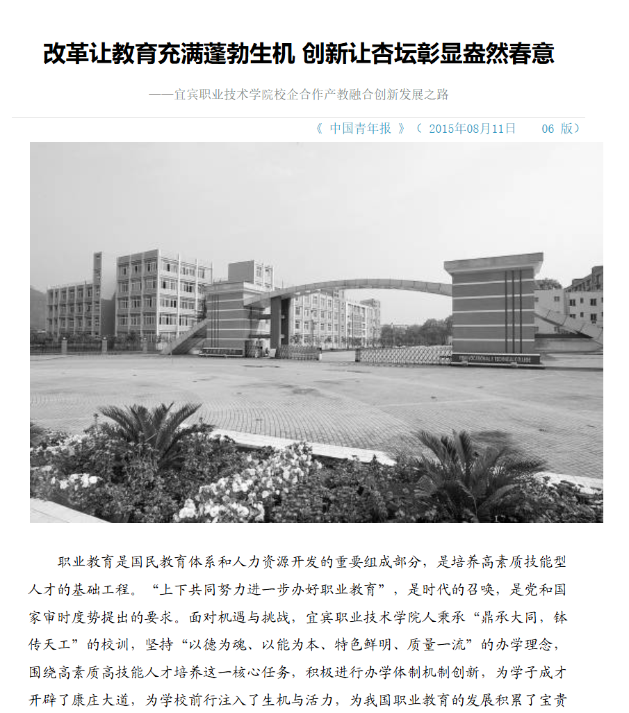 改革让教育充满蓬勃生机 创新让杏坛彰显盎然春意—宜宾职业技术学院校企合作产教融合创新发展之路