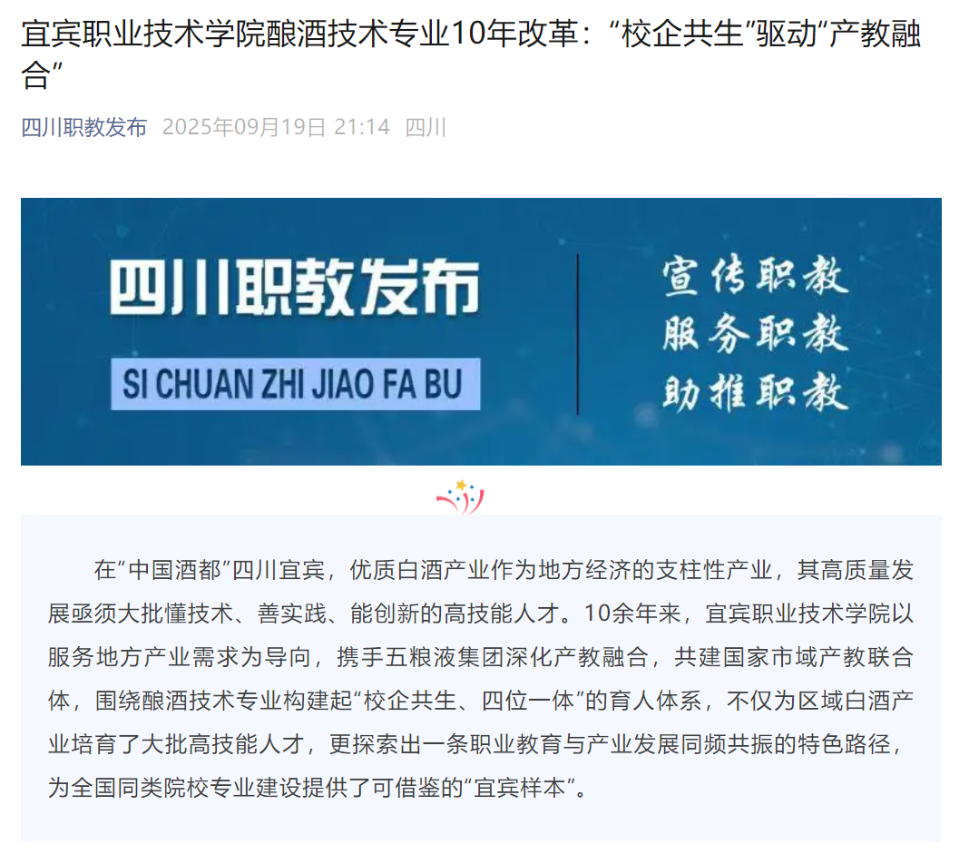 宜宾职业技术学院酿酒技术专业10年改革:“校企共生”驱动“产教融合”