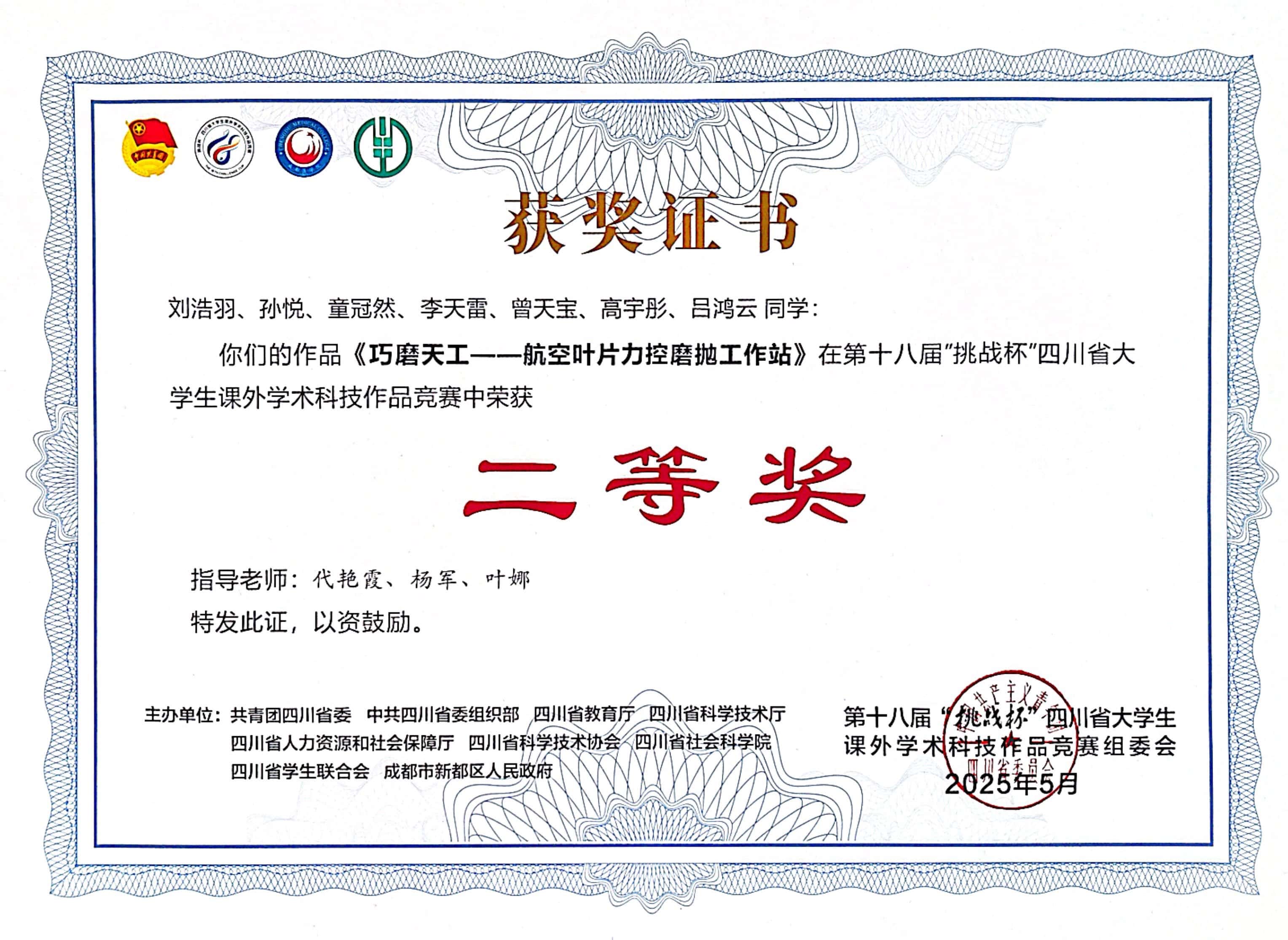 十八届”挑战杯“四川省大学生课外学术科技作品竞赛 二等奖